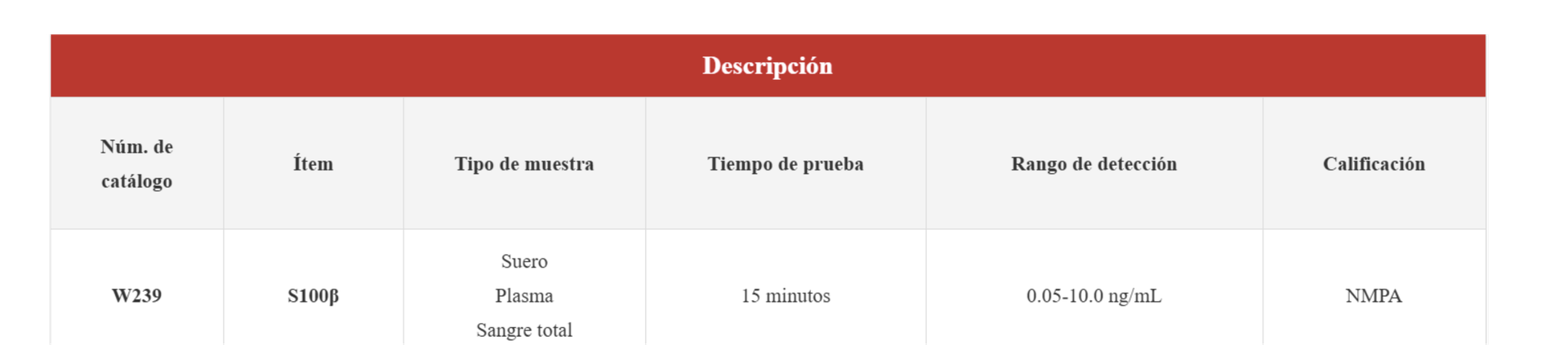 W239 Prueba cuantitativa de S100β S/P/ST
