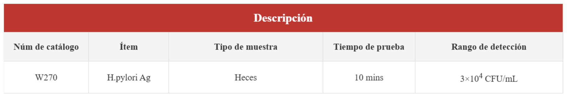 W270 Prueba cuantitativa rápida de H. pylori Ag