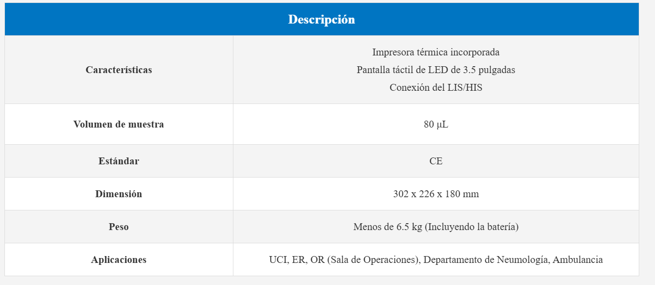 El analizador de gases sanguíneos solo debe ser utilizado por profesionales de la salud y para uso diagnóstico in vitro.